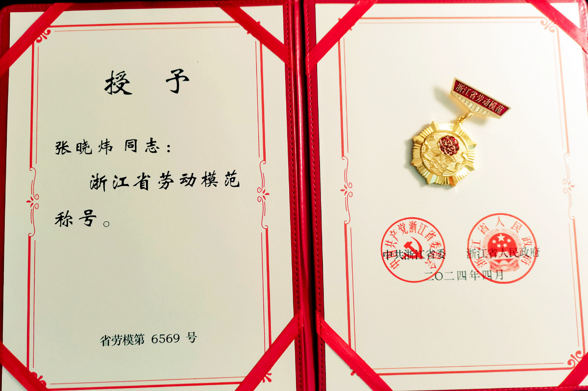 張曉煒榮獲“2024年浙江省勞動模范”證書與勛章。 王洋 提供