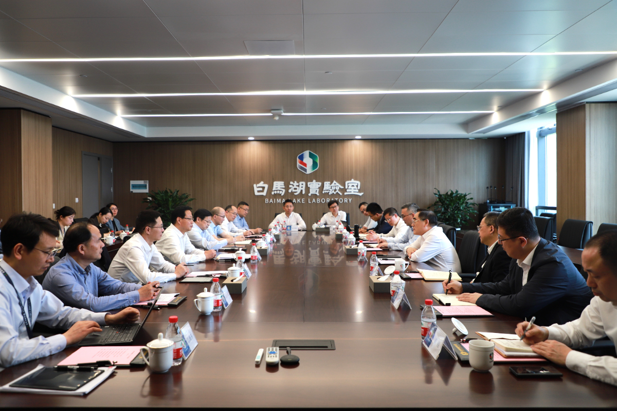 本網訊 5月6日下午,浙能集團黨委書記、董事長劉盛輝在白馬湖實驗室會見浙江交通集團黨委書記、董事長高浩孟,雙方就科研平臺建設、創新機制優化、高層次人才引育等方面進行深入交流。