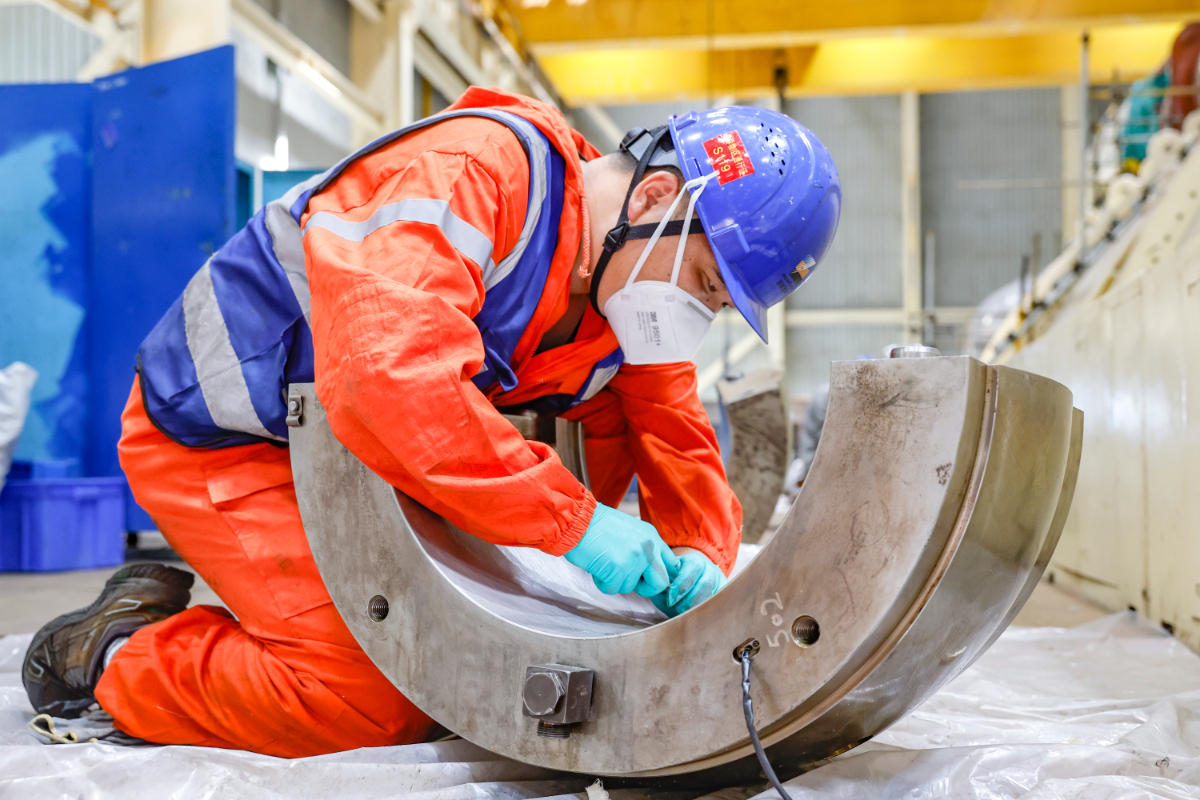 “這次C級(jí)檢修班組要完成5個(gè)徑向軸承的檢修,當(dāng)天檢修軸瓦必須當(dāng)天完成修刮、檢驗(yàn),配合儀控專業(yè)測(cè)溫元件更換、下軸瓦回裝并配合數(shù)據(jù)測(cè)量,既考驗(yàn)作業(yè)人員的體力、耐力,更要求作業(yè)效率、工藝水平和協(xié)調(diào)組織能力。”嘉電檢修部熱機(jī)五班負(fù)責(zé)人如是說。