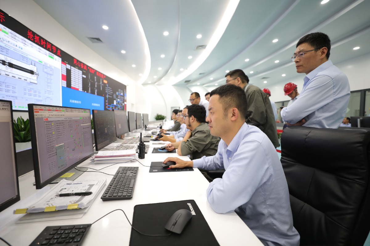 鎮(zhèn)聯(lián)電公司燃機異地遷建改造項目集控室中,各專業(yè)骨干人員晝夜奮戰(zhàn)、協(xié)同發(fā)力。 鄭凱 攝
