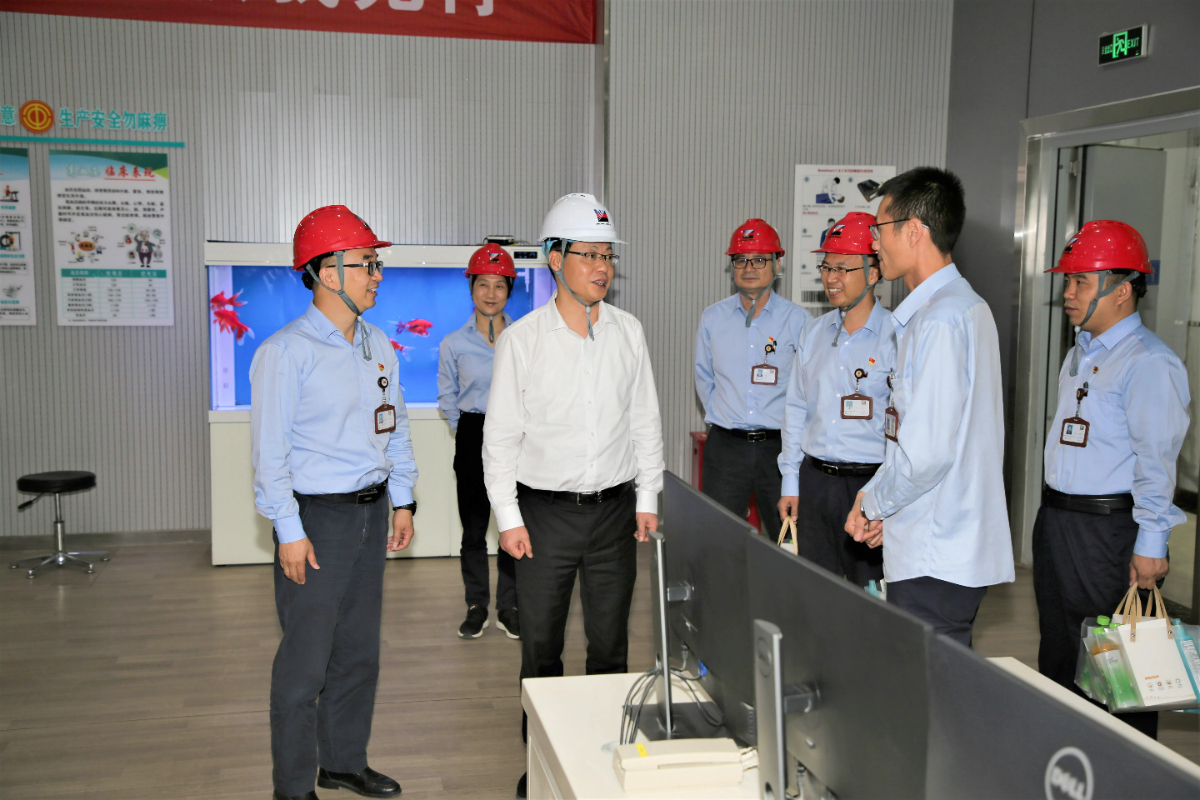 集團黨委書記、董事長劉盛輝走進集控室了解迎峰度夏能源保供情況。 徐新蘇 攝