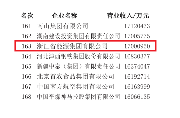 浙能集團(tuán)榮列“2024中國(guó)500強(qiáng)企業(yè)”第163位