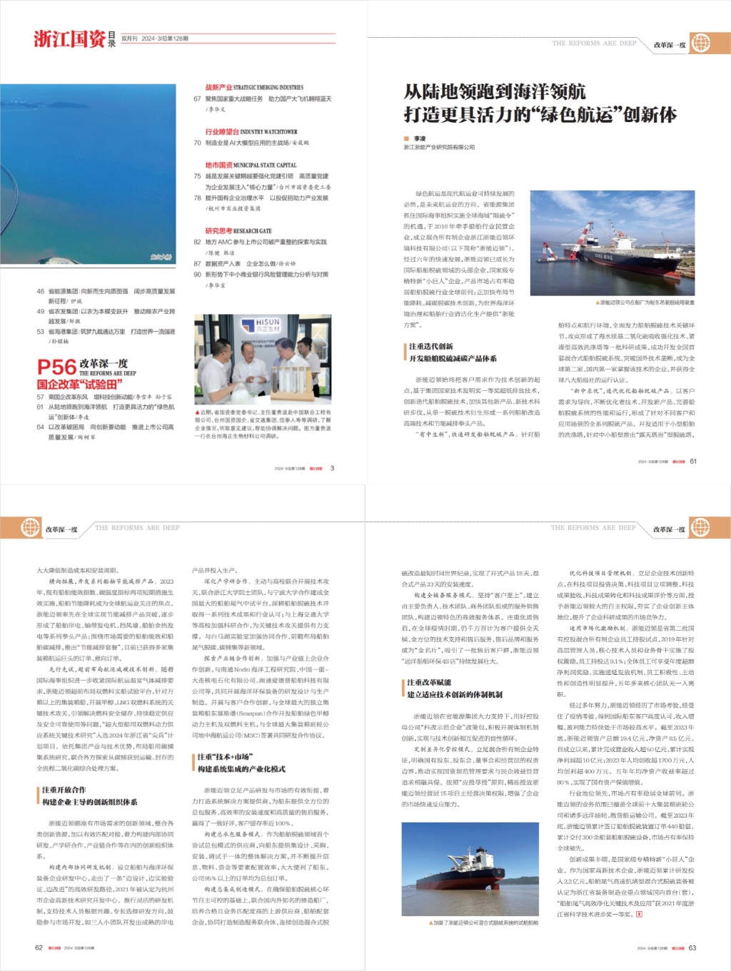 綠色航運(yùn)是現(xiàn)代航運(yùn)業(yè)可持續(xù)發(fā)展的必然,是未來航運(yùn)業(yè)的方向。省能源集團(tuán)抓住國際海事組織實(shí)施全球海域“限硫令”的機(jī)遇,于2018年牽手船舶行業(yè)民營企業(yè),成立混合所有制企業(yè)浙江浙能邁領(lǐng)環(huán)境科技有限公司(以下簡稱“浙能邁領(lǐng)”)。經(jīng)過六年的快速發(fā)展,浙能邁領(lǐng)已成長為國際船舶脫硫領(lǐng)域的頭部企業(yè)、國家級專精特新“小巨人”企業(yè),產(chǎn)品市場占有率穩(wěn)居船舶脫硫行業(yè)全球前列;正加快布局節(jié)能降耗、減碳脫碳技術(shù)創(chuàng)新,為世界海洋環(huán)境治理和船舶行業(yè)清潔化生產(chǎn)提供“浙能方案”。