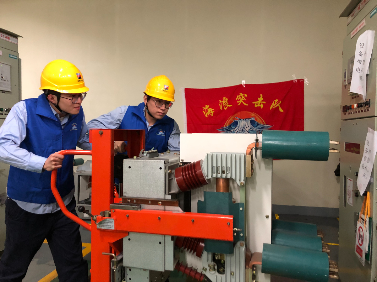 舟山煤電1號機C修現場,“海浪突擊隊”成員協助隔離組完成10千伏母線1B段復役工作。 鄒咪咪 提供