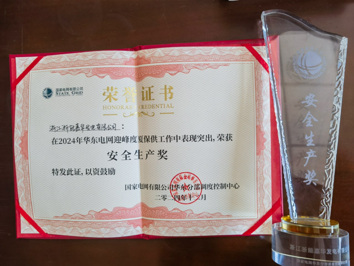 嘉華發(fā)電公司榮獲華東電網(wǎng)2024年迎峰度夏保供安全生產(chǎn)獎