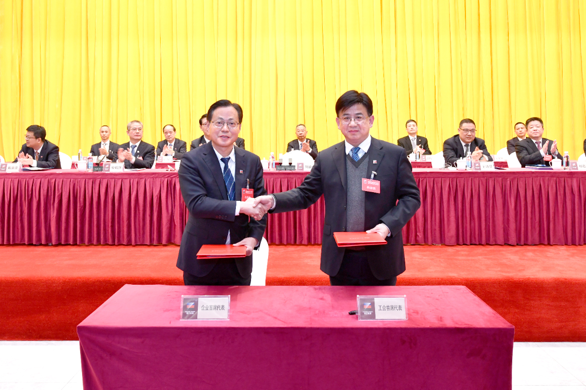 大會對2024年度8家“優(yōu)秀企業(yè)(部室)”、6家“黨建工作先進(jìn)集體”、60位“先進(jìn)工作者”等進(jìn)行了表彰。會上,集團(tuán)與各產(chǎn)業(yè)公司、直屬企業(yè)簽訂了三項責(zé)任書,企業(yè)方首席代表劉盛輝和職工方首席代表胡斌簽訂了《浙江省能源集團(tuán)有限公司集體合同(2025年-2027年)》《女職工權(quán)益保護(hù)專項集體合同(2025年-2027年)》,會議還審議通過了《工作報告決議》等。會上,燃料集團(tuán)等8家先進(jìn)集體的單位代表作了交流發(fā)言。