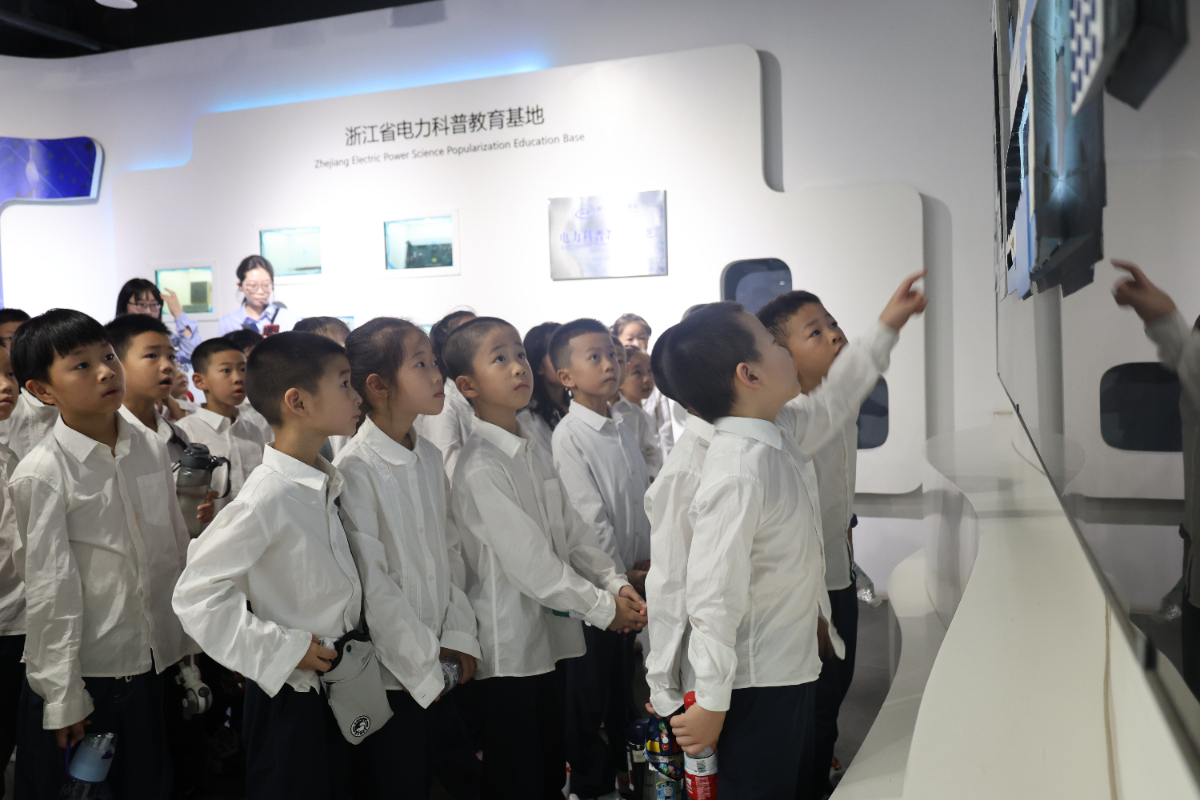 浙能蘭電講解員在電力科普教育基地為小學(xué)生介紹發(fā)電原理。 何云玲 攝