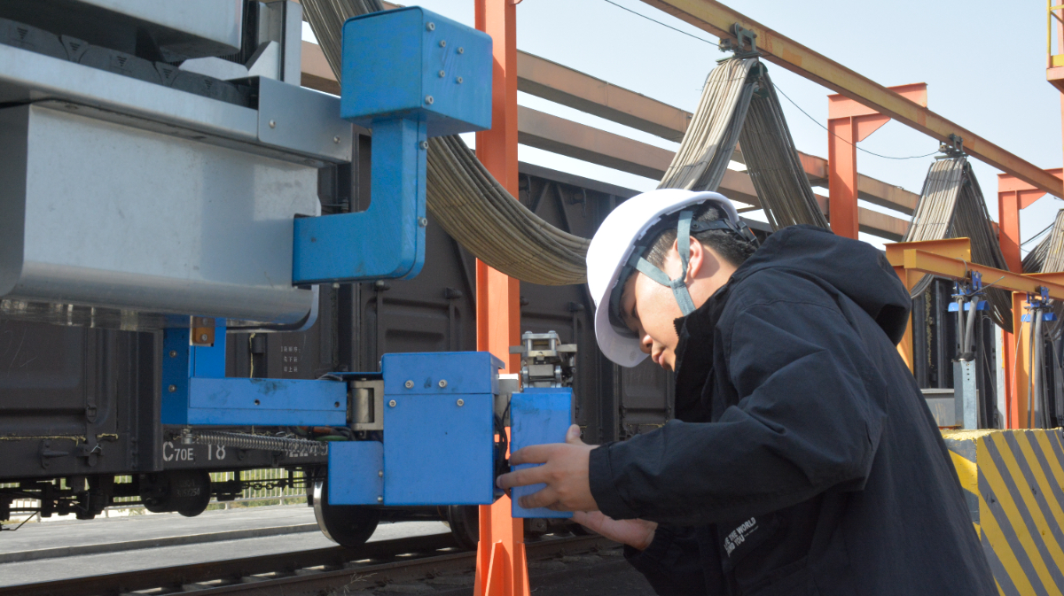 “翻車機全自動智能摘復鉤機器人”研發項目團隊成員現場調試摘復鉤機器人。 駱洲 提供