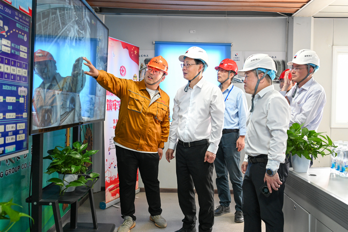 浙能集團(tuán)黨委書(shū)記、董事長(zhǎng)劉盛輝赴浙能臺(tái)二電實(shí)地查看二期建設(shè)情況,并了解排水盾構(gòu)情況。 俞琬 攝