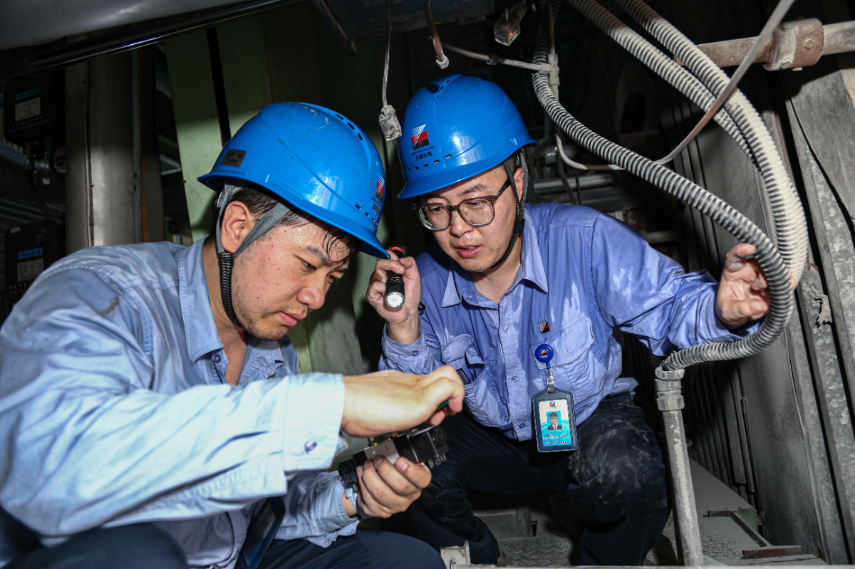 浙能長電儀控專業(yè)人員在狹小空間內(nèi)檢修點火槍推進電磁閥。 鄭慧瑗 攝
