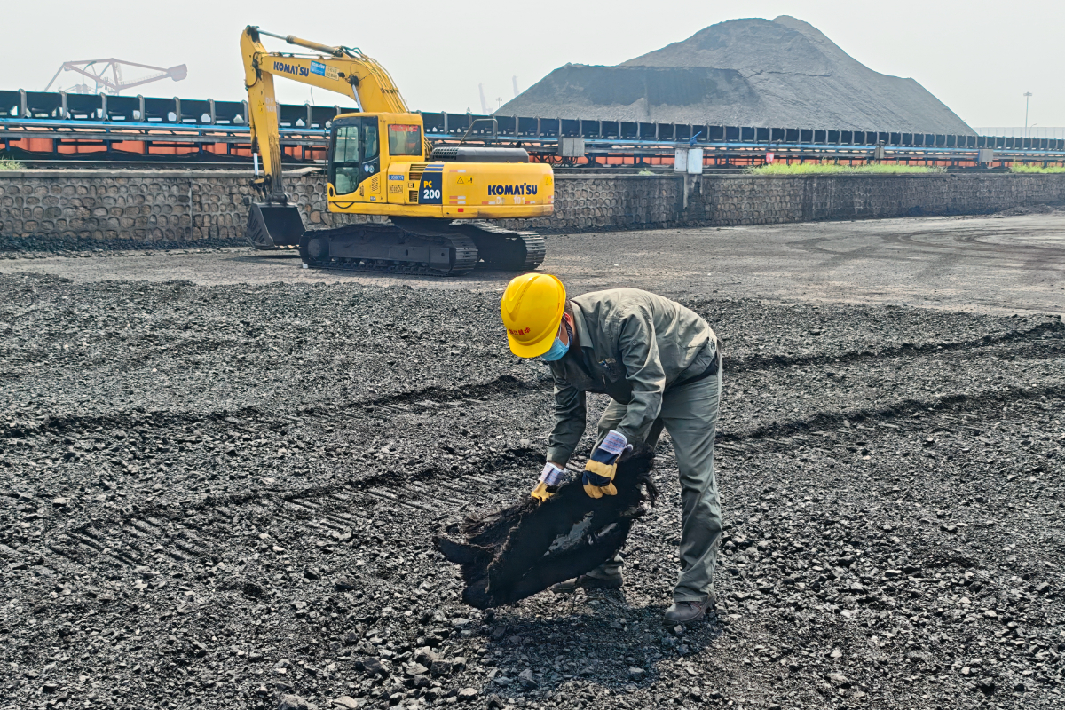 在浙江越華的采制班組里,部分班組承擔(dān)了高強(qiáng)度的人工垛采任務(wù),這些工作往往得在正午高溫前搶時間完成。像一座座黑色小山的煤堆,腳踩上去能感受到灼人的熱氣往上冒。“堆場煤堆放時間長,不同位置煤質(zhì)可能有差異,必須按標(biāo)準(zhǔn)均勻布點采集足夠的子樣數(shù)才能保證代表性。”檢測人員的身影在煤堆間穿梭,手里的樣品桶始終沉甸甸的——里面裝著的,是高溫下不打折的擔(dān)當(dāng)。