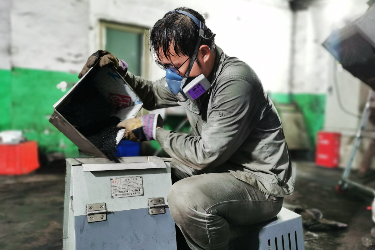 采制人員對煤樣進(jìn)行破碎。 葉其彬 攝