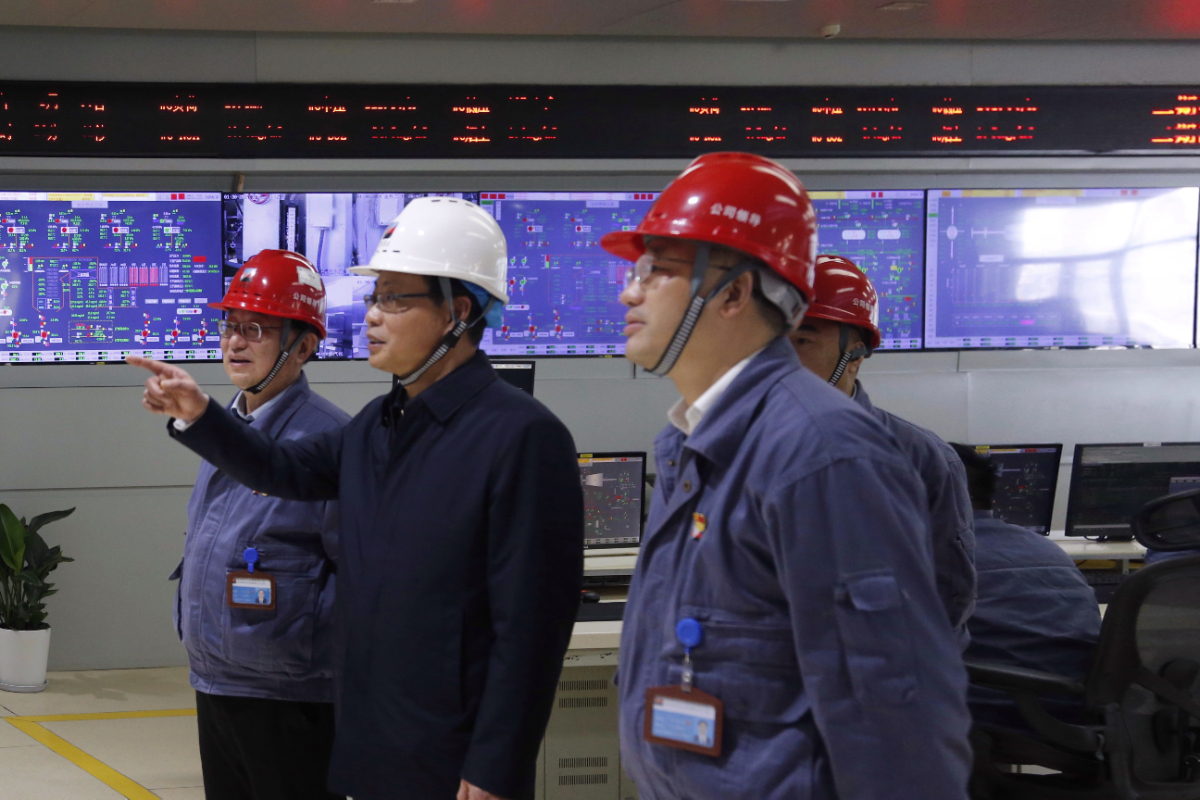 1月30日下午,浙能集團黨委副書記、總經理倪震一行到嘉興發電廠開展安全檢查,圖為嘉電四期擴建項目9號機組項目地。 王重陽 攝