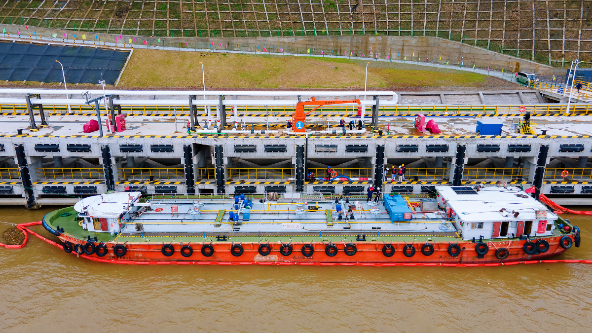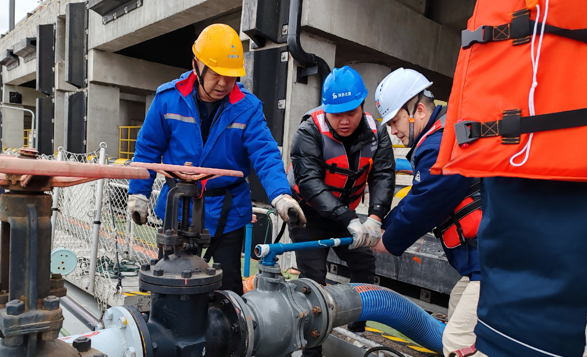 “一切檢查完畢,具備接卸條件!” “開始卸油!”3月6日上午10時48分,坐落于蘭溪市蘭江畔的浙石油蘭溪油庫內(nèi),隨著進(jìn)油現(xiàn)場總指揮一聲令下,油庫碼頭正式啟泵,“兆平6666”油船466噸柴油沿著配套管道緩緩注入油庫D01儲罐。這是該油庫具備運營資質(zhì)以來首次進(jìn)油,有力開創(chuàng)油庫運營新局面,奮力奪取一季度“開門紅”。