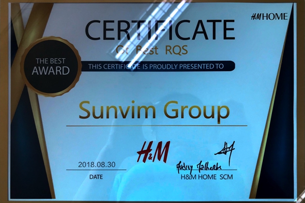 孚日獲H&M全球供應(yīng)閃“最佳質(zhì)量獎(jiǎng)”