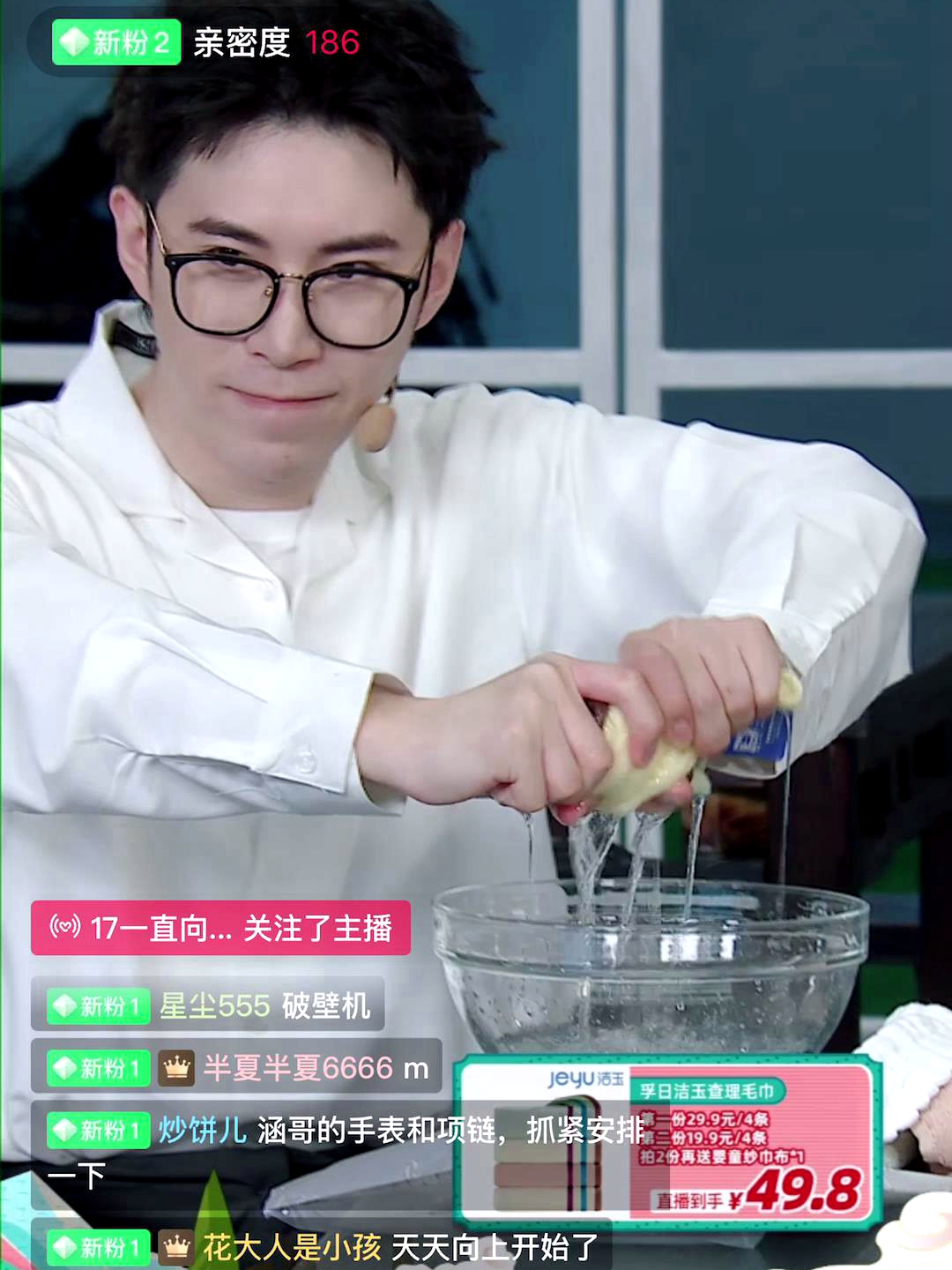 話題回到粉絲上,吳總表示孚日有一萬六千名員工、其中大多都是汪涵的粉絲。而汪涵卻說,我們才應(yīng)該是孚日的粉絲。因為,孚日在全球市場上耕耘了三十多年,在國際上受到眾多知名品牌的認可——換個LOGO就可以讓消費者掏更多的錢。汪涵的家國情懷瞬間爆棚,他動情的表示要支持國貨精品,“非常希望有一點小小的能力,通過這樣的直播,讓大家看到真正的中國質(zhì)量?!?他兩手緊緊的握了握潔玉毛巾,強調(diào)道:“這,就是中國質(zhì)量。”而后臺數(shù)據(jù)來看,直播6分鐘狂賣25萬條的火爆銷量,正是消費者給中國質(zhì)量的熱情擁抱。