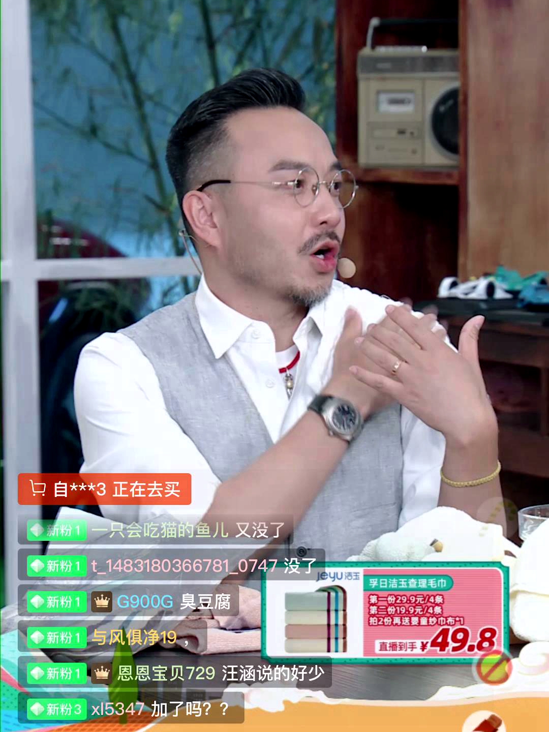 隨后,汪涵終于恢復了知性本色,談起了毛巾的文化淵源。他說,國人使用毛巾類制品的時間是非常悠久的,可以追溯到秦漢時期。從方言中的帕帕、帕子,頭腦風暴到手絹、手巾、直到羽扇綸巾……這時候,助理的一聲驚呼讓汪涵瞪圓了眼睛:上線的五千組毛巾已經(jīng)賣光了!是的,還沒到價格介紹環(huán)節(jié),就已經(jīng)被熱情的觀眾搶購一空。吳總現(xiàn)場拍板決定追加一萬組,這樣的一再追加最后到了表態(tài)“只要買,咱就加”,這份基于強大生產(chǎn)能力的豪氣贏得了汪涵雙手點贊。