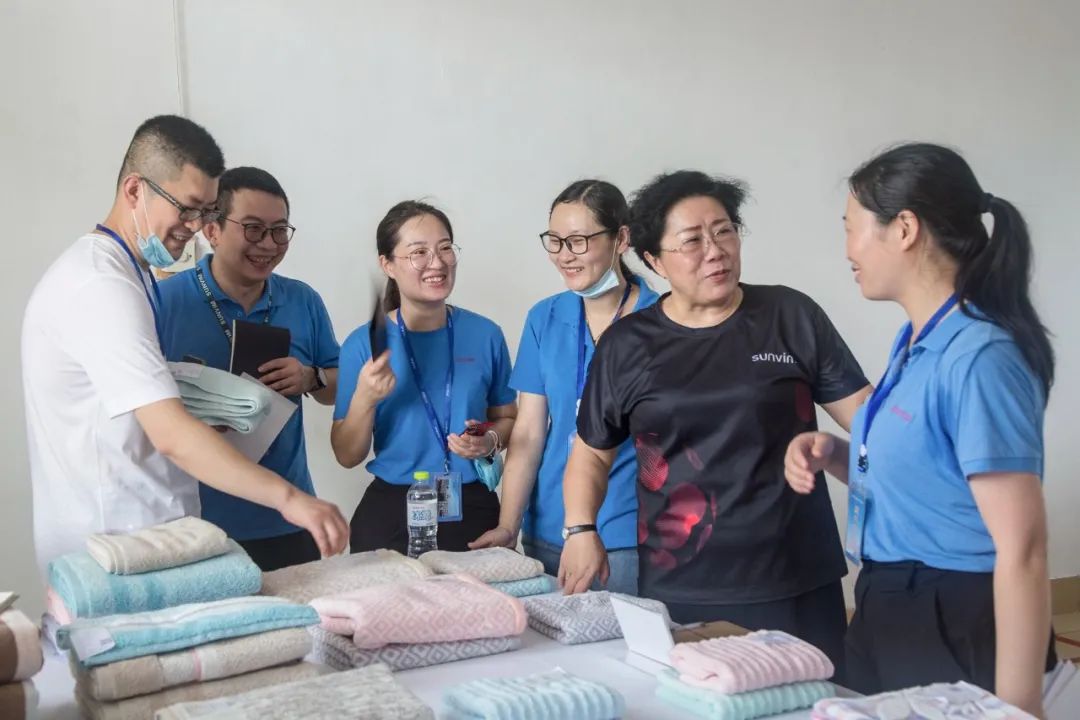 吳明鳳總經(jīng)理要求,面對(duì)國際疫情影響,毛巾一、二、三廠要快速反應(yīng),主動(dòng)出擊,積極配合,以常態(tài)化的產(chǎn)品推介等形式熱情服務(wù)內(nèi)貿(mào)營銷。各工廠的生產(chǎn)、質(zhì)量、技術(shù)等部門要合理分工,密切協(xié)作,滿足市場(chǎng)需求,保證客戶滿意,從而實(shí)現(xiàn)既助力了國內(nèi)市場(chǎng)品牌建設(shè)、又提高了設(shè)備運(yùn)轉(zhuǎn)效率的雙贏局面。