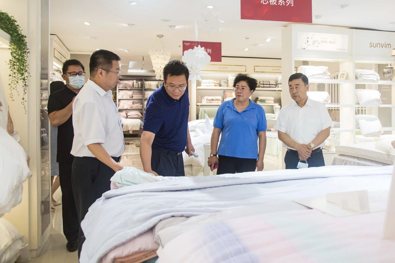 在參觀家紡產(chǎn)品時(shí),陳達(dá)一行現(xiàn)場感受了孚日集團(tuán)出口亞洲、歐洲、美洲、澳洲等國際市場,以及以孚日、潔玉、賽維絲等自有品牌開拓國內(nèi)市場的系列產(chǎn)品。